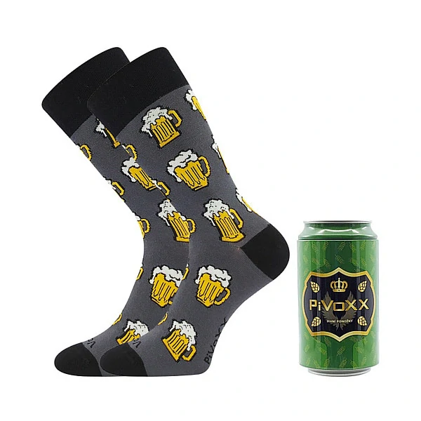 Vtipné pánske ponožky VoXX® PIVoXX + PLECHOVKA sú originálne ponožky s pivnými motívmi. Bavlnené ponožky s elastanom sú priedušné a pohodlné po celý deň aj večer. Pre milovníkov tohto horkého nápoja máme ku každému páru pivných ponožiek ako darček plechovku, do ktorej si môžete svoje ponožky schovať. Klasické tenké ponožky sú vhodné na celodenné nosenie, ideálne do letných záhradiek, reštaurácií a krčmičiek, kde budete za tento módny doplnok po zásluhe pochválení. V teplotnej triede A.