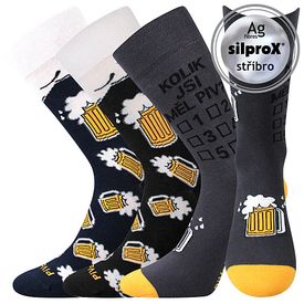 Originálne pánske ponožky VoXX® PIVoXX sú slabé ponožky pre všetkých správnych pivárov. Bavlnené ponožky s elastanom sú priedušné a pohodlné po celý deň aj večer. Navyše majú ochranu ióny striebra v materiáli silproX®, ktoré pôsobia antibakteriálne a nedochádza tak k tvorbe zápachu. Pre milovníkov tohto horkého nápoja máme hneď 3 páry v balení, s motívmi chmeľu a pollitrov s týmto zlatistým mokom. Tenké ponožky sú vhodné na celodenné nosenie, ideálne do letných záhradiek, reštaurácií a krčmičiek, kde budete za tento módny doplnok po zásluhe pochválení. V teplotnej triede A sú ponožky dostupné v nadmernej veľkosti.