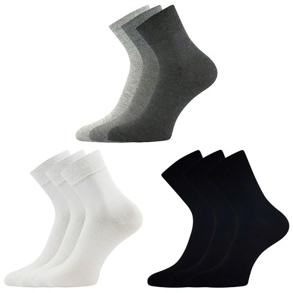 Slabé bambusové ponožky Boma® EKOM sú stredne vysoké, príjemné tenké ponožky z hladkého úpletu s jemným nesťahujúcim pigue lemom. Použitý materiál bambus (bambusová viskóza) je prírodný materiál s úžasnými vlastnosťami. Má antialergické vlastnosti, výborne saje vlhkosť, sám o sebe je antibakteriálny a krásne sa leskne. Tenké hladké ponožky sú vhodné na každodenné nosenie. Predávame v ekonomicky výhodnom balení po 3 pároch - bez zbytočných etikiet, spojené bez zošitia iba papierovým prebalom.