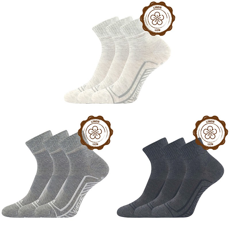 Slabé voľnočasové ponožky VoXX® LINEMUM užijete po celý deň. Kombinácia pružného elastanu, bavlny a ľanu robí tieto dámske a pánske ponožky v strednej výške nad členok jedinečným prvkom v našej ponuke ponožiek. Stredne vysoké ponožky s výškou nad členok sú to správnou voľbou na celodenné nosenie v jarnom aj letnom období.Odolné ponožky sú vysoko priedušné, retiazkovaná špica nikde netlačí a zaisťuje pohodlie a komfort pri nosení, jemný lem nohu nesťahuje a elastická zóna po obvode priehlavku zabraňuje pretáčaniu ponožky v obuvi. Slabé ponožky majú teplotnú triedu A od +10 °C do +35 °C.