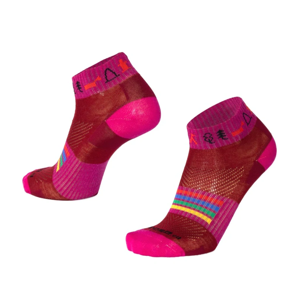 LUZY MAPA Merino so známymi mapovými ikonami sú pripravené na letné využitie pre najrôznejšie športové aktivity, ale napríklad aj ako pohodlné ponožky pre chvíle voľna alebo do práce. Ponožky sú v hladkom prevedení s jemnou vetracou sieťkou na priehlavku. Vyrobené sú ako znížené, dobre teda padnú do nízkych topánok. Zachovávajú si športový strih, Achilovka, päta, špice aj časť chodidla sú opatrené dodatočným zosilňovaním. Klenba chodidla je navyše podporená elastickým pásikom proti kĺzaniu ponožky. Špička je ako vždy zakončená kvalitným, jemným, netlačiacim švom. Nosným prvkom tohto radu je kvalitná Merino vlna v kombinácii s rôznymi typmi elastanov a talianskymi polyamidmi.