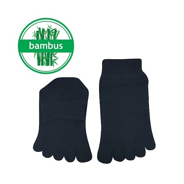 Bambusové prstové ponožky Boma® PRSTAN 08 sú špeciálne krátke ponožky, ktoré obliekajú a chránia aj prsty na nohe. Ponožky v čiernej farbe sú vďaka použitému materiálu bambus prirodzene antibakteriálne a antialergické. Hladké ponožky sú lesklé, veľmi jemné a príjemné na dotyk. Prstové ponožky sú vyššie a hodia sa nielen do barefootovej ale aj fivefingers obuvi.